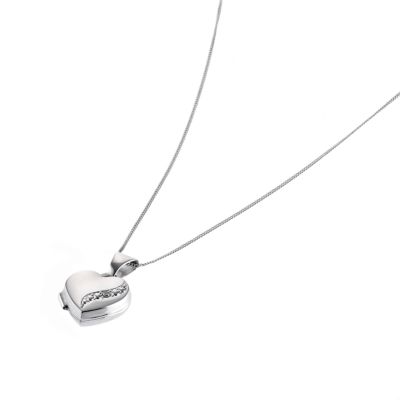 Image Name: 9ct White Gold Diamond Cut Heart Locket